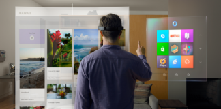 마이크로소프트(Microsoft)가 레드먼드(Redmond)에서 2015년 1월 21일에 미디어 행사를 열고 윈도우(Windows)..