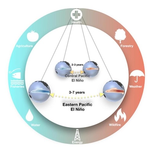 ▲ 두 개의 엘니뇨 고유 진동 모드 도식도 [과학기술정보통신부 제공] 이상기후의 대표적인 원인으로 꼽히는 엘니뇨 현상의 발생 메커니즘을 처음으로 규명한 연구가 나와 앞으로 기상이변을 예측할 수 있을지 관심이 집중된다. 엘리뇨가 발생하는 동안 어떤 지역에서 어떤 기후변화를 겪게 될지 예측하는 데 도움이 될 전망이다. 기초과학연구원(IBS) 기후물리연구단(단장 악셀 팀머만 부산대 석좌교수)은 동태평양(EP)