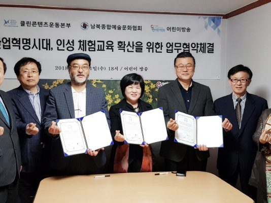 4차산업혁명으로 인해 사람들의 삶이 변화하고 있는 가운데 미래를 이끌 아이들에 대한 교육에도 많은 변화가 필요하다는 목소리가 커지고 있다. 클린콘텐츠국민운동본부 및 어린이방송, 남북종합예술문화협회는 유아와 어린이를 4차산업혁명시대를 주도할 미래인재로 양성하고 아름다운 사회 문화 확산을 위해 상호 업무 협약을 체결했다.클린콘텐츠국민운동본부(회장 안종배)와 어린이방송(대표 강현일) 그리고 남북종합예술문화협회(이사장 김종희)는 12일(목) 어린이방송 회의실에서 대한민국의 꿈나무인 유아와 어린이들을...