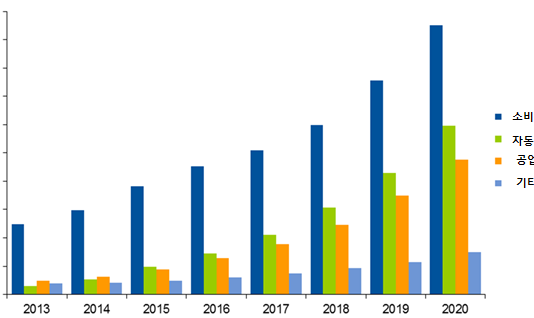 2015년 전체 반도체 시장의 성장률은 5.7%에 머무는 반면, 사물인터넷(이하 IoT)에 사용되는 프로세싱, 센싱 및 커뮤니케이션 반도체 소자 관련 시장은 36.2%로 급속 성장할 전망이다.가트너(Gartner)에 따르면, ‘사물(Things)’ 반도체 소자의 매출은 2015년 75억 8,000 만달러에 달할 것이며 이중 프로세싱 반도체가 가장 큰 비중을 차지하고 센서 매출은 47.5% 증가해 가장 강한 성장세를 보일...