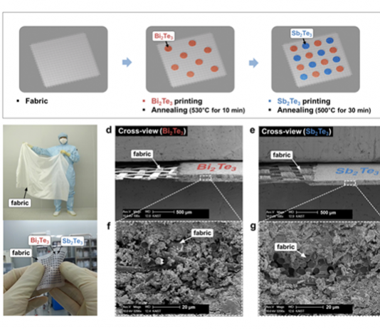 한국과학기술원(KAIST) 연구진이 웨어러블 전자기기(wearable electronics)의 전력공급원으로 사용될 수 있는 “입을 수 있는 열전소자”를 개발하였다.기존의 상용 열전소자는 세라믹 기판을 이용하여 단단하고 휘어지지 않으며, 무게가 무겁고, 낮은 에너지 효율로 웨어러블 전자기기에 활용에 부족했지만, 이번에 개발된 열전소자는 유리섬유를 이용함에 따라 의류형태의 자유로운 가공이 가능하고, 무게가 가볍고, 전력생산 효율도 높아서 같은 무게의...