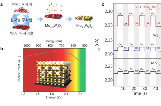 국내 연구진이 원자 단위의 미세 조절기술(원자층 증착법)로 가시광 흡수율은 4배 이상 높인 3나노미터(nm) 두께의 얇은 광소재를 개발했다. 김형준 연세대 교수가 주도하고 송정규 연구원(연세대 박사과정, 제1저자)이 수행한 이번 연구 결과물은 네이처가 발행하는 학술지인 네이처 커뮤니케이션스(Nature communications) 7월 23일자에 게재되었다.(논문명: Controllable synthesis of molybdenum tungsten disulfide alloy for vertically composition-controlled multilayer)그래핀과...
