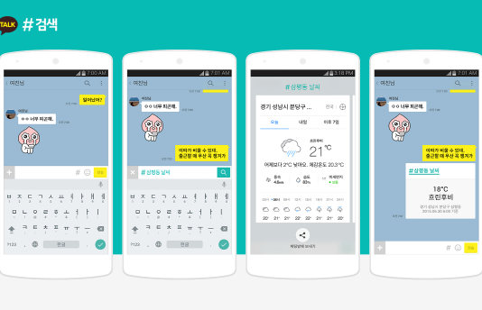 다음카카오는 30일 카카오톡 샵(#)검색과 채널탭의 공식 출시와 함께 모바일 검색에 최적화된 ‘카카오검색’을 선보인다고 밝혔다. 카카오톡 샵검색은 이용자가 카카오톡에서 대화하다 궁금한 점이 있으면 채팅방에서 바로 검색해보고 친구에게 공유할 수 있는 기능이다. 카카오톡 대화 입력창의 #(샵) 버튼을 누르면 검색창으로 바로 전환되어 원하는 키워드를 입력해 바로 검색 결과를 확인할 수 있다. 이를 통해 다른...