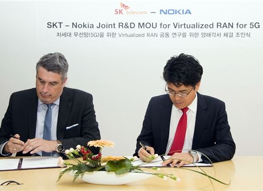 SK텔레콤은 글로벌 네트워크 장비업체인 노키아(NOKIA, 대표 라지브 수리)와 핀란드의 노키아 본사에서 5G 시대를 위한 각종 기술 개발을 목표로 하는 협약(MOU)을24일(현지시간) 체결했다고 밝혔다.양사는 차세대 5G 기지국의 개발에 필수적인 가상화 및 소프트웨어 기반 망구성 기술과 차세대 클라우드 관리, 기가(Giga)급 데이터 전송을 위한 기술 등 다양한 분야에 대한 기술 교류 및...