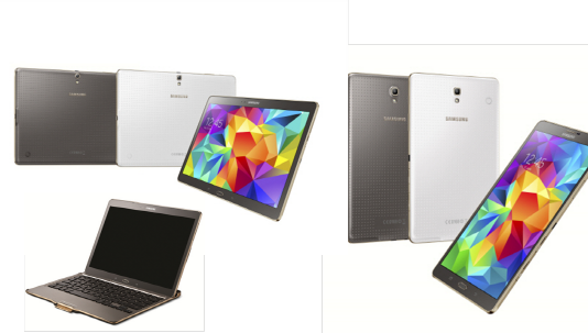 삼성전자가 12일(현지시간) 미국 뉴욕 매디슨 스퀘어가든 시어터(Theater at Madison Square Garden)에서 열린 ‘삼성 갤럭시 프리미어 2014’ 행사를 통해 전략 프리미엄 태블릿 ‘갤럭시 탭S(Galaxy Tab S)’ 2종을 공개했다.‘갤럭시 탭S’는 WQXGA(2,560x1,600, 16:10) 해상도의 10.5형, 8.4형 2가지 크기로, LTE와 WiFi 버전 2가지로 출시된다.‘갤럭시 탭S’는 ‘슈퍼 아몰레드(Super AMOLED)’ 디스플레이를 탑재, 어도비(Adobe) RGB...