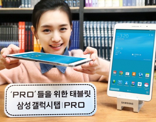 삼성전자가 포터블 사이즈 태블릿 ‘갤럭시 탭 프로(GALAXY Tab PRO)’를 6일 국내 시장에 출시한다.지난 1월 CES 2014를 통해 공개된 ‘갤럭시 탭 프로’는 크기가 8.4인치로 7.2mm의 얇은 두께와 6.7mm의 슬림 베젤, 331g의 가벼운 무게로 뛰어난 휴대성이 호평을 받았다.‘갤럭시 노트 프로’에 탑재된 학업과 업무 관련 다양한 솔루션도 함께 제공한다....