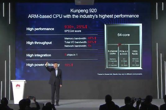 화웨이가 업계 최고 성능의 7나노(nm) 공정의 ARM 기반 CPU '쿤펑 920(Kunpeng 920)'을 발표했다.화웨이는 7일(현지시간) 중국 심천에서 열린 기자 회견을 통해 발표한 ARM 기반 2.6GHz 64코어 프로세서로 서버 및 슈퍼 컴퓨터용 '쿤펑 920'은 7nm 공정으로 제조되며, 화웨이 자체 설계 프로세서다. 화웨이는 "이 CPU는 처리속도와 성능이 업계 수준보다 월등히 높다"며 "분기 예측(branch...