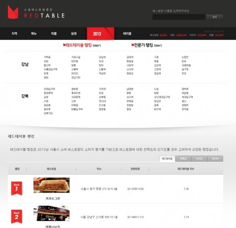 세종대 호텔관광대 석, 박사 출신들이 창업한 소셜레스토랑랭킹 레드테이블(www.redtable.kr, 대표 도해용)에서는 빅데이터를 이용한 ‘서울에서 가장 좋은 레스토랑, 2013 레스토랑 어워드’를 발표하였다.레드테이블이 발표한 어워드는 실제 소비자 선택을 반영하기 위해 온라인과 오프라인 양쪽에서 수집한 데이터를 수집하여 다양성을 확보하였다.먼저 온라인에서는 네이버, 다음, 네이트, 티스토리 등 등록된 맛집 블로거의 글 60여만건과, 네이버윙스푼, 메뉴판닷컴,...
