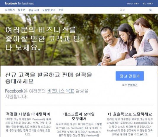 페이스북이 국내 마케터들의 비즈니스를 위한 페이스북 사이트 (Facebook for Business)의 한국어 서비스를 도입했다.올해 여름 출시된 비즈니스 페이스북 사이트는 페이스북 마케팅에 대한 소식과 정보를 한 눈에 확인할 수 있다. 오늘부터 한국어를 비롯한 일본어, 중국어(번체), 중국어(간체), 영어(영국), 독일어, 프랑스어, 스페인어(유럽), 이탈리아어, 포르투갈어(브라질), 스페인어(라틴 아메리카) 등 11개 언어 서비스가 추가로 제공되며...