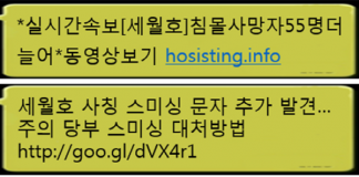 [민두기 기자] 세월호 침몰사고를 사칭한 스미싱 문자가 추가로 발송되고 있는..