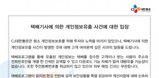 [김들풀 기자] 국내 최대 규모의 물류·택배회사 CJ대한통운에서도 개인정보가 택배기사에 의해 유출,..